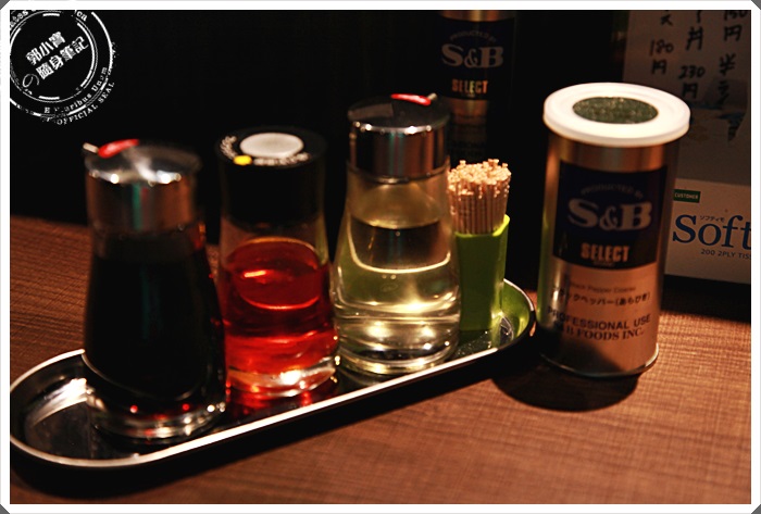 | 桌上的調味品挺多的,但我大部分拉麵店都不會使用到這些調味品,但是有機會可以試試看紅色的那一瓶辣油,日本網友稱他們家的自製辣油為鬼油,據說是相當的棒的辣油。 |