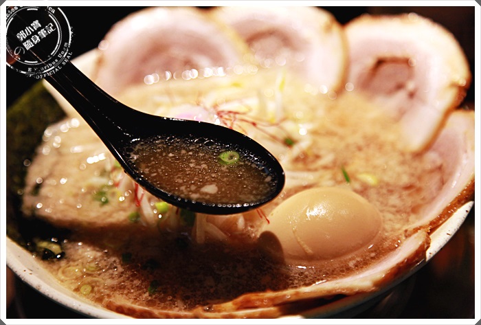 | 吃麵前先喝一口湯試試看,湯頭相當的濃郁,因為豬油的關係所以油脂相當的濃厚,基底的鰹魚高湯醇厚順口,搭配叉燒的油脂喝起來不會太膩口也不會太過於死鹹。 |