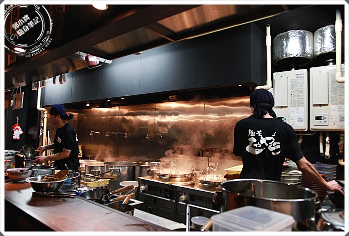 | 廚房是屬於開放式廚房,因為販售的湯頭還滿多種的,所以可以看到很多筒高湯都正再熬煮,但是這麼大的廚房卻只有兩個廚師在操作的,所以上麵的速度說真的有點慢,我入座到麵上來至少花了30分鐘左右。 |