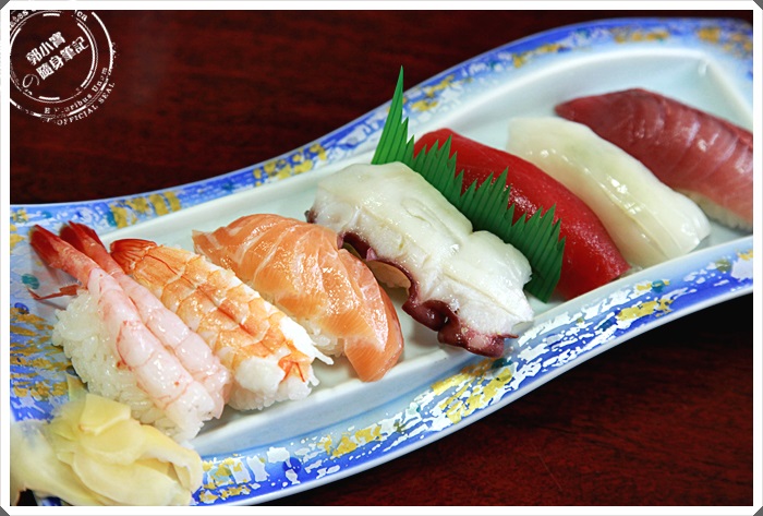 | 這一份握壽司總共有七貫,但是看起來食材都是比較普通的。 |