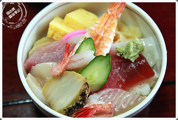 海鮮丼飯看起來厲害多了,料也相當的多,裡面的白飯是特別使用佐渡米,是冷醋飯。 |