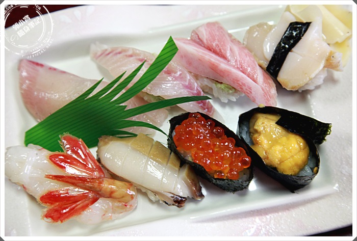 | 御定食的握壽司食材看起來相對好了許多,基本上水準都還不錯,但是這些都不是我點的,因為一路看上來都覺得這邊都還賣得滿便宜的,所以我一開始就瞄準了海膽丼飯。 |