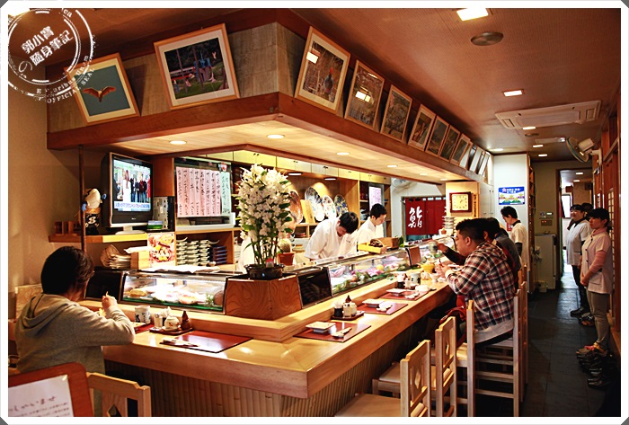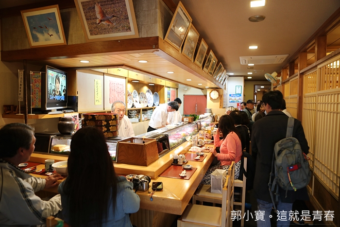 | 板前也是坐了滿滿的人,我本來想坐板前的,但是店家說板前已經滿了,而且有幫我們訂了樓上的包廂,因為我們這次的新潟清酒團大約是10幾個人一起自由行,所以 |