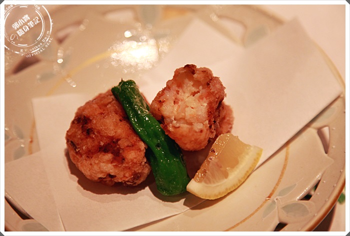 | 本來以為是日式炸雞,咬了一口才發現不是炸雞,裡面包裹的內餡是鬆蝦漿,蝦味十足,一下子就被我吃光了。 |