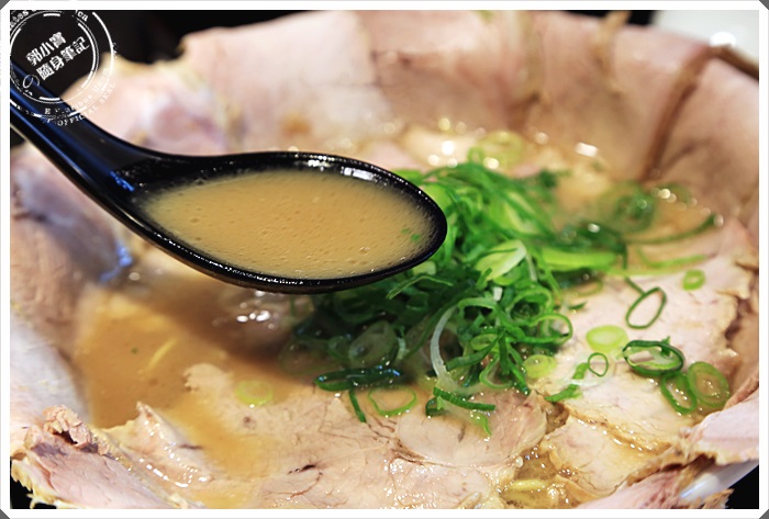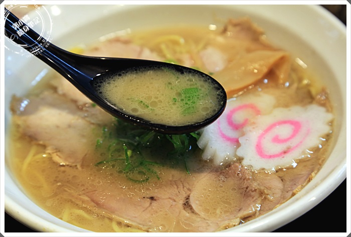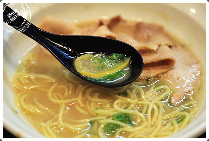 | 湯頭的部分喝起來豚骨味道沒有很重,但是還滿適合台灣人的口味,鹹度的比例也相對的低。 |