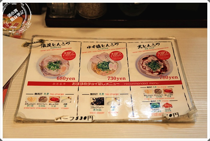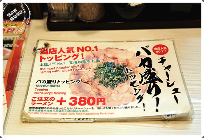 擺滿整碗的肉片像浪花一般的一層又一層,重點海報上的價位才680円,也太便宜了吧,但是旁邊有一個+380円特大碗,不知道照片上的是加錢還是沒加錢,所以跟爸母親討論了一下,其實是請示老人家早餐願不願意吃拉麵XD