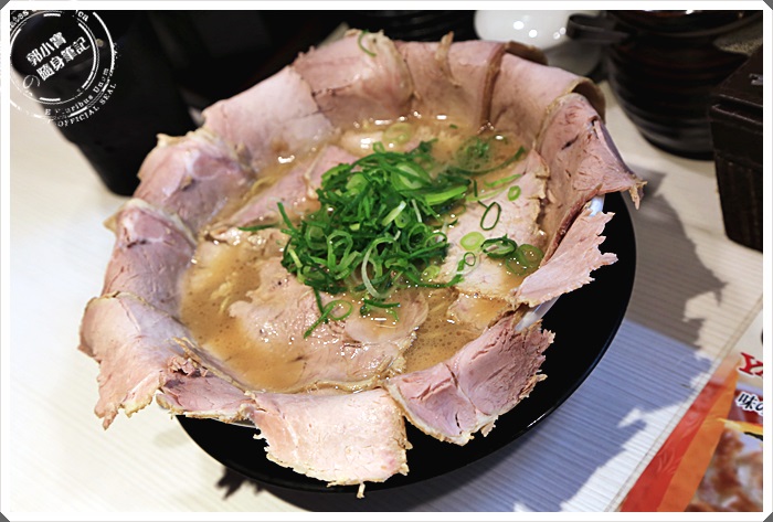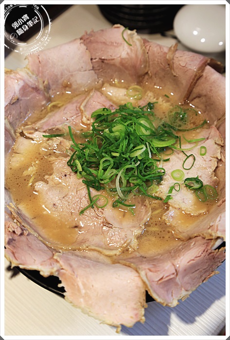 這一碗招盤的豚骨拉麵當然是我親自欽點,雖然看起來跟海報有點不一樣,但是看到肉片滿碗的感覺還滿爽的,肉片都還滿薄的,吃起來還滿爽口的,但是因為太薄了所以口感大至上還可以。