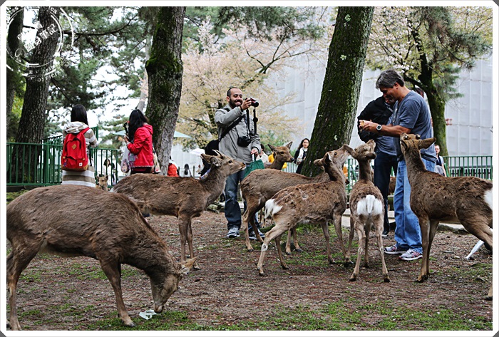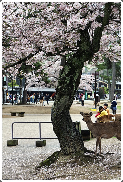 | 奈良的櫻花季節我想大概是奈良小鹿一年之中吃的最飽的一段時間了,因為遊客真的非常的多,當然大量櫻花的美景也是引來人潮最主要的原因, |