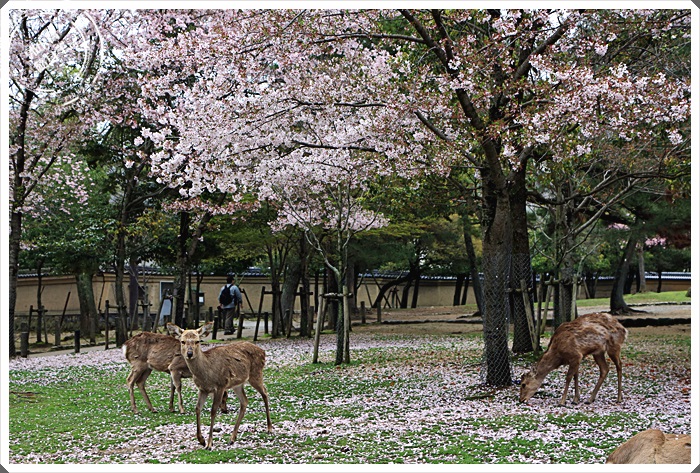 | 櫻花盛科的奈良真的非常漂亮,除了有看不完的櫻花以外還有古建築跟可愛的小鹿。 |