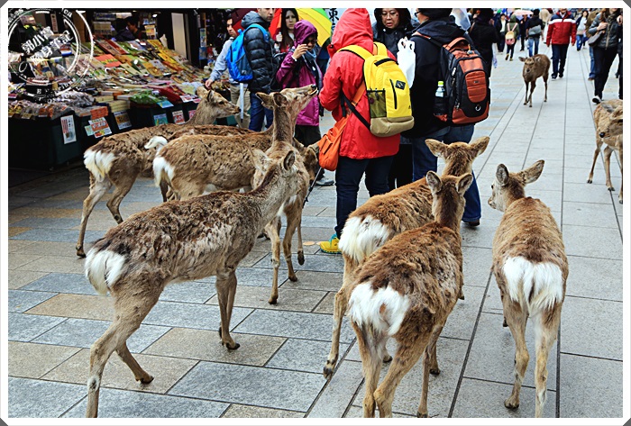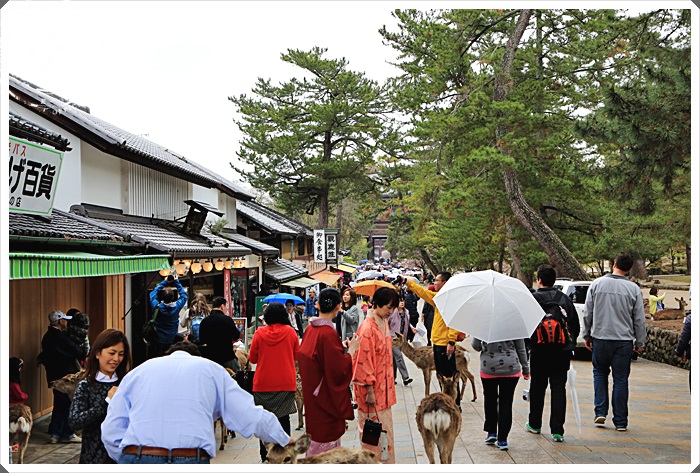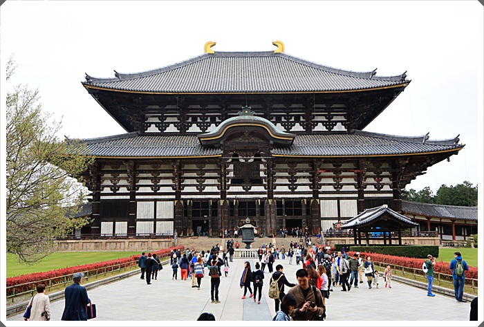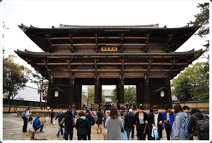 來奈良最重要的景點大概就是東大寺了,奈良曾經是日本的首都,加上保存得非常完整,所以這邊也是目前日本古建築不輸給京都的一個地方,最龐大且保存的最好的就是東大寺了,所以來奈良看小鹿的旅遊民眾也一定會來東大寺朝聖,話說小鹿聚集最密集的地方也是東大寺,看看這滿滿的人潮就知道她的熱門程度。