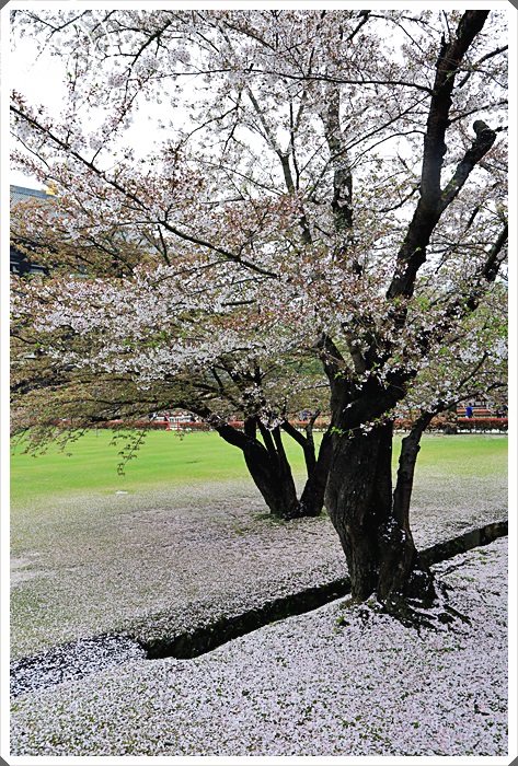 | 旁邊的櫻花盛開,真的很想拿地墊就在這個地方躺下來野餐,欣賞這美麗的一幕。 |