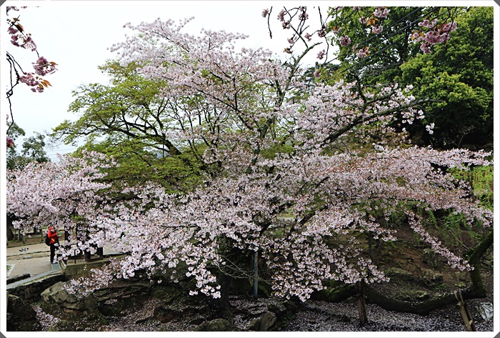 | 寺內的庭院也種了很多櫻花,櫻花種類裡面我個人最喜歡的就是垂柳櫻,百年垂柳櫻盛開的時候會讓人目眩神迷。 |