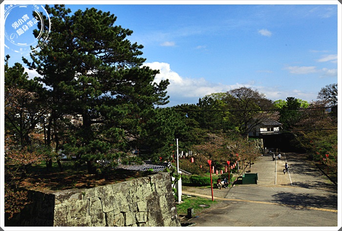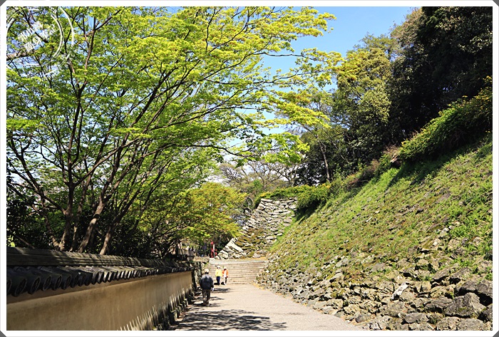 | 爬了一段時間抬頭一看,已經快接近天守閣了,其實並不是很長的路程,只是其中有一段路比較陡,所以感覺會有一點累。 |