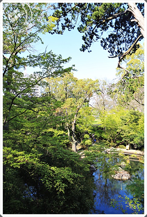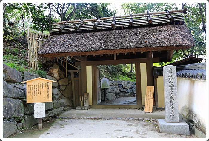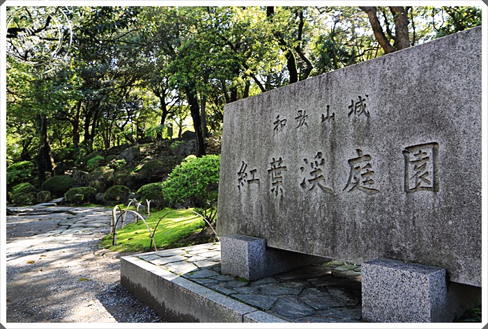 | 紅葉溪庭園是和歌山城最有名的庭園,漫步在這邊很舒服,即使大太陽也有林蔭遮蔽,作在這邊休息欣賞美景藍天真的非常愜意。 |