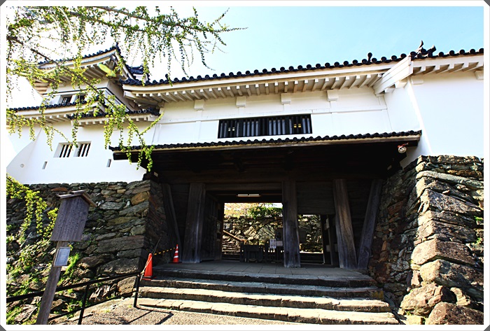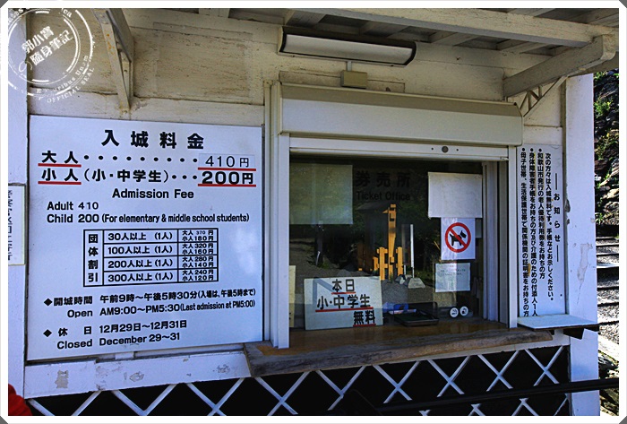 | 入口處也跟一般的天守閣不太一樣,天守閣的顏色跟建築工法都有別一方的日本成的天守閣,其實我已經很久沒去進天守閣,因為走了幾個天守閣以後,發現裡面其實就是小走道跟超陡的樓梯,沒進去的進去會覺得很有趣,進去幾次就會很膩了,但是這天守閣真的又燃起我的興趣了。 |