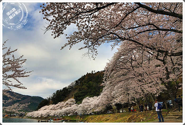| 沿著步道漸漸往後面走,一路上的櫻花依然是滿開著,似乎這一段路都走不完的樣子,其實海津大崎整段路是真的超長的,但是其實並不建議全部走完,最精彩的其實就是前面這一段到大崎寺這一段就夠了。 |