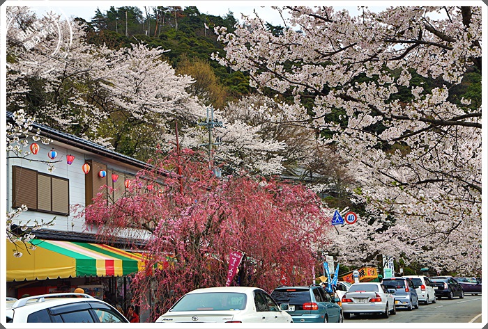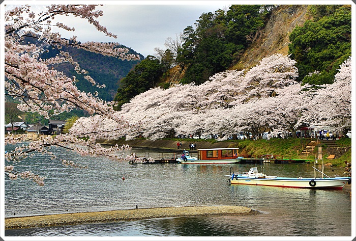| 走到這邊的時候已經快經過了4小時了,中間還有野餐休息跟沿路拍照,慢慢走感覺時間過得好快,一下子就4個多小時了,到達這邊都已經是下午3點多了,看到左手邊有很多商店就是代表到了大崎寺了,這邊的商店有販售冷飲跟熱食還有丼飯,搭乘觀光遊覽船大部分也都在這邊登船,這邊算是海津大崎最熱到的地方,自駕車的朋友如果是櫻花季來的話也是必須將車子停在這附近的停車場內。 |