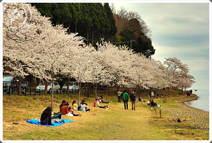 | 這大草地幾乎讓我在這邊待了大約3個多小時,來之前我們就打算好了要來這邊野餐,便當也都買好了,現場也有幾個攤販在賣熱食,但是我們帶了飯糰跟麵包還有冰啤酒,在這邊享受湖畔櫻花美景,填飽肚子後躺在草地上望著天空跟櫻花真的超級舒服的,每次來日本看櫻花都覺得行程超趕的,這一次卻是一天只跑一個大景點,這樣挺在草地上享受櫻花我看只有在滋賀縣的幾個櫻花大點才可以享受到,幾乎根本就不想離開這邊了,怎麼會有這麼棒的人間天堂呢!! |