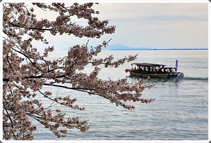 | 海津大崎這邊也有觀光遊覽床可以搭乘,可以從湖上觀賞櫻花,但是可惜時間的問題我只能放棄搭乘觀光遊覽床,除非有安排在這邊住上一個晚上。 |