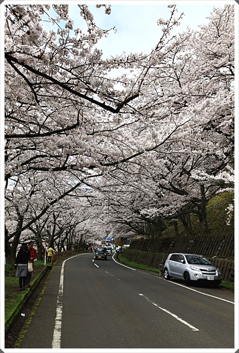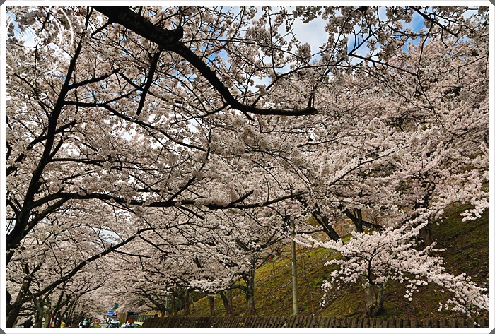 | 海津大崎的櫻花並木盛開的時間比較長,只要不遇到下大雨幾乎有很高的機率可以遇到跟小寶看到一樣的美景,櫻花盡看純白色的真的是每到了一個極點,建議走在人行草地上比較安全,因為不管是假日還是非假日,櫻花盛開的海津大崎幾乎人車不斷,左右兩邊的風景都是不一樣的櫻花背景。 |
