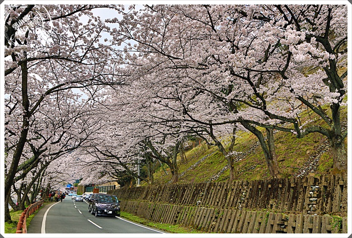 | 馬路上的車子較多,建議不要騎腳踏車,步行是欣賞海津大崎最好的交通方式,後半段在照著海津大崎路線懶人包的路線回到車站,這樣最省時間,櫻花盛開的美景就這樣開始印入我的眼前。 |