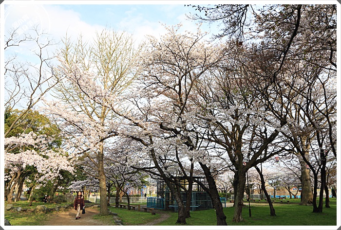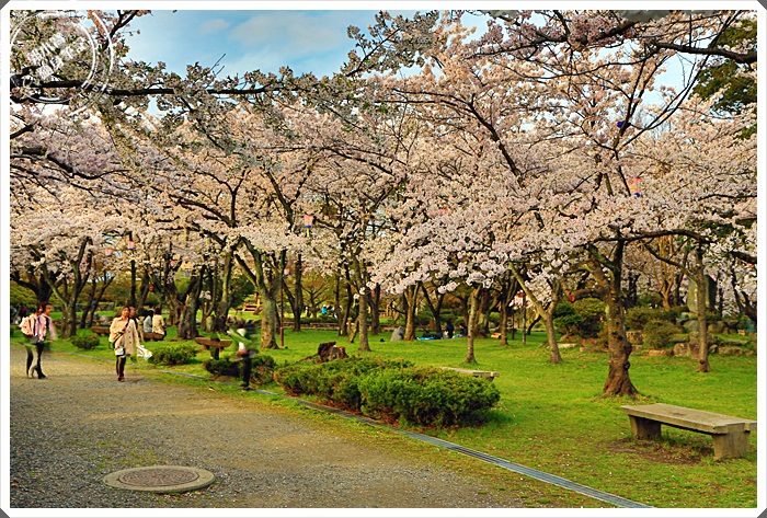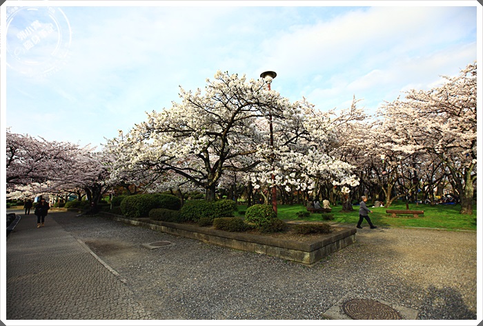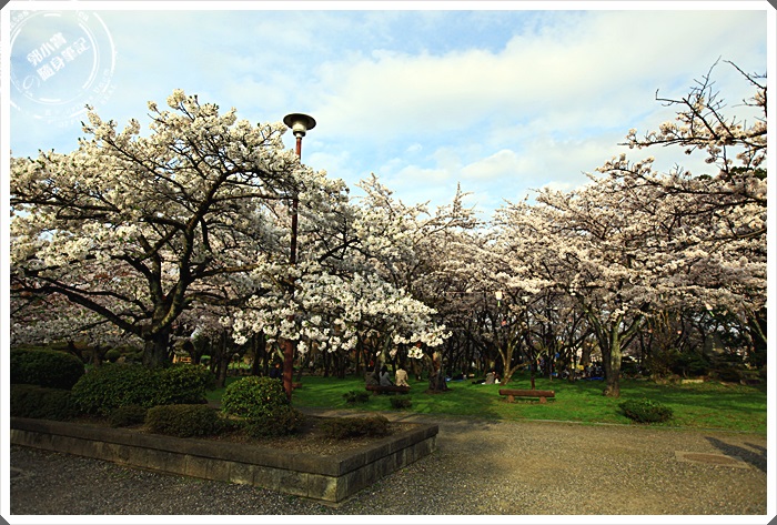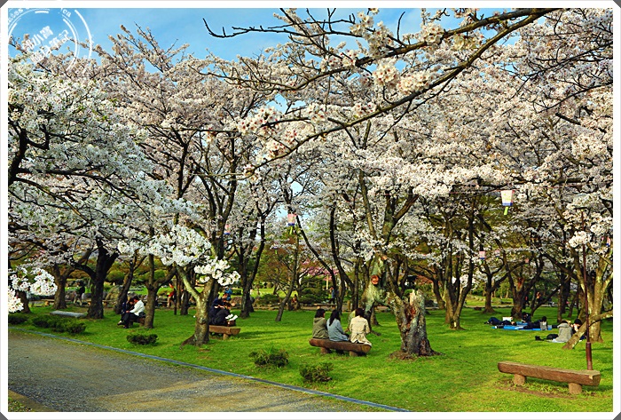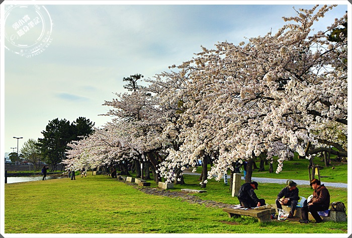| 綠草如茵的草地有好多日本人都在櫻花樹下野餐,這樣的氣氛真的超讚的,有的人單純野餐,也有很多人還來這邊烤肉喝酒,除了在櫻花樹下野餐欣賞櫻花以外,這邊的草皮真的照顧的超好的,躺在草地上望向櫻花林真的是美到了極點了。 |