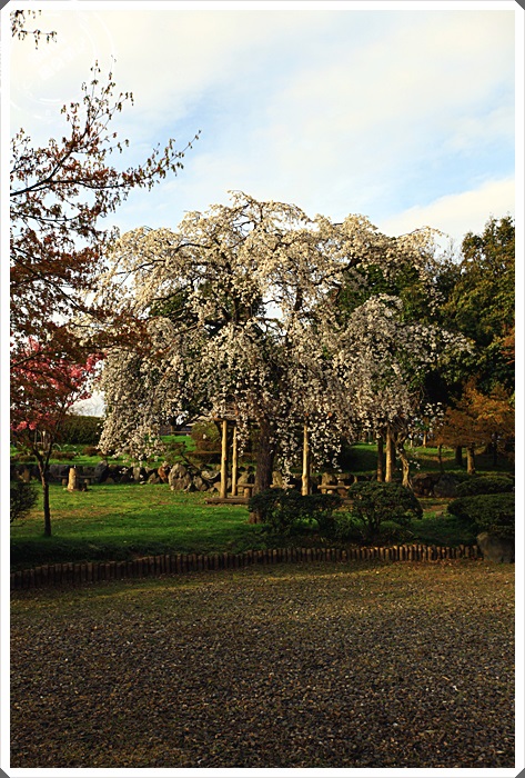 | 路旁的垂柳應也超美,但是我們要趁著夕陽正漂亮的時候走到海邊,然後再回頭走,所以就沒有靠近欣賞這壯碩的垂柳櫻了。 |
