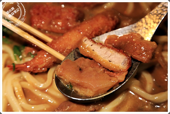 湯頭是屬於超濃郁的咖哩醬,麵匠の心的咖哩醬比起日本的其他連鎖烏龍專賣店裡的咖哩烏龍麵味道真的更濃郁了許多,吃到最後會有點鹹,但是對於喜歡重口味及咖哩的我超開心的啊!!