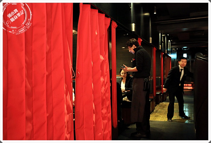 灰暗的燈光加上還有一個調酒吧台跟情侶沙發等,怎麼看都不像是一個拉麵店,店內的客人幾乎都是以年輕人為主。 |