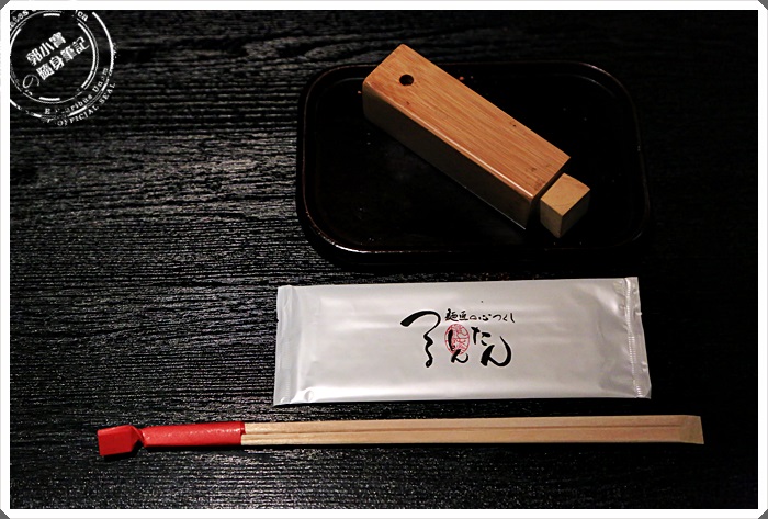 | 服務生立馬擦好桌子後就送上來了餐具,一雙筷子跟調味料,方型木柴盒就是調味料相當的特別,第一次看到這種調物料盒。 |