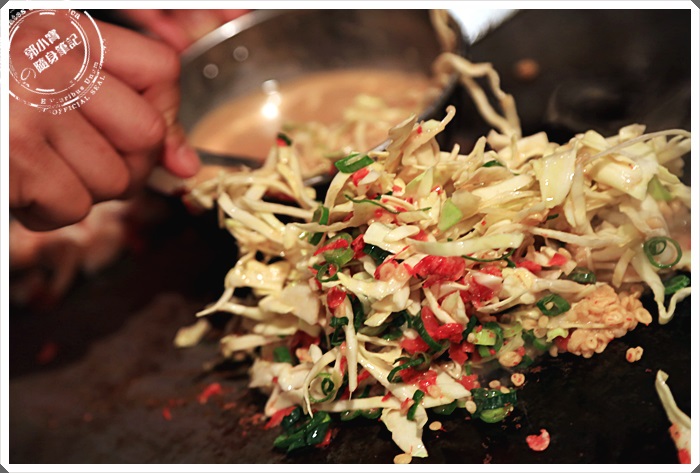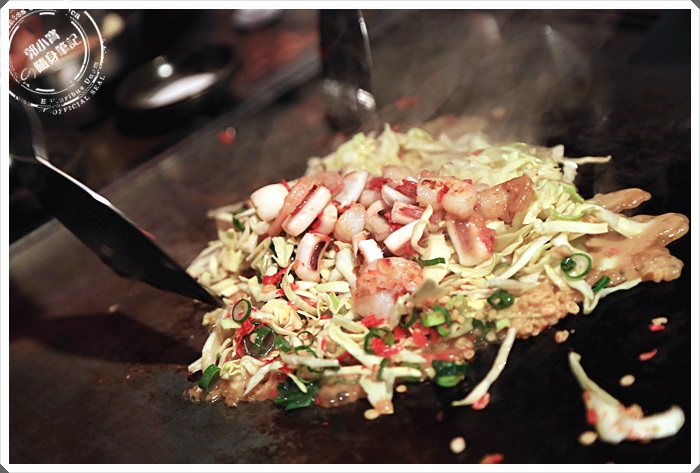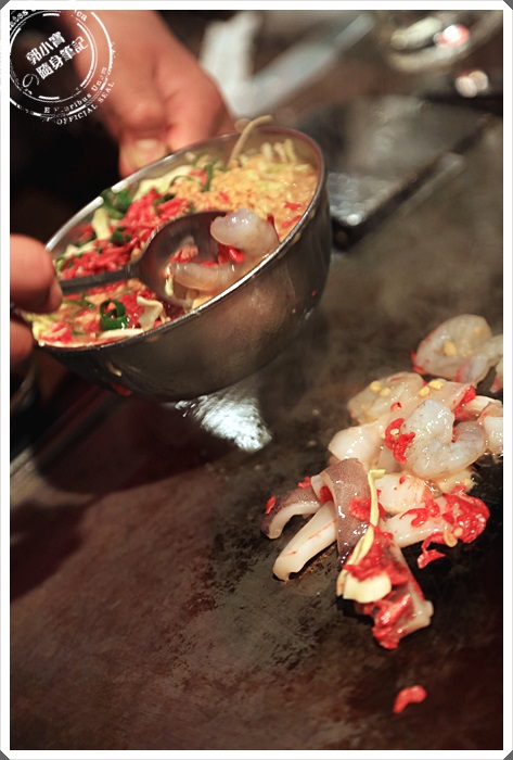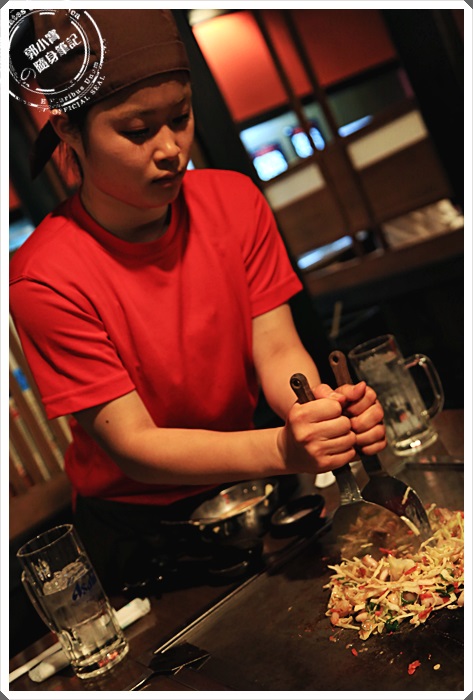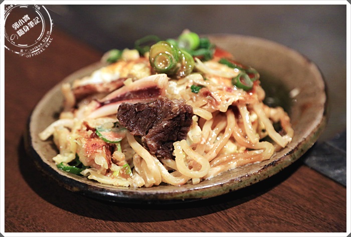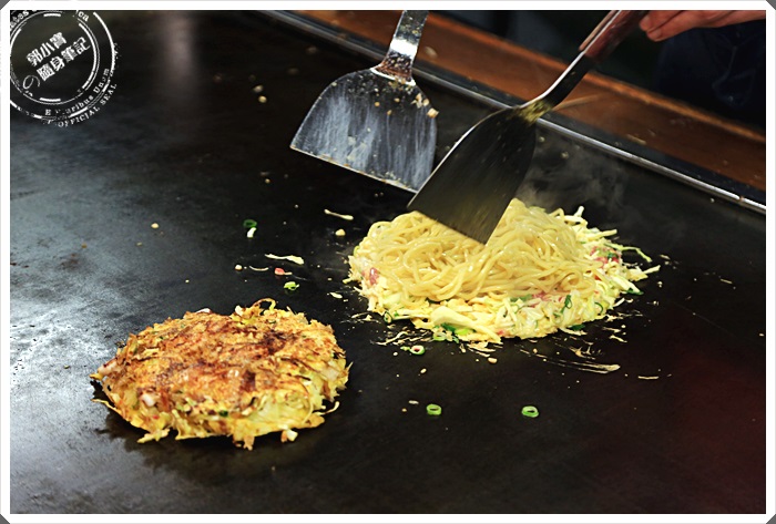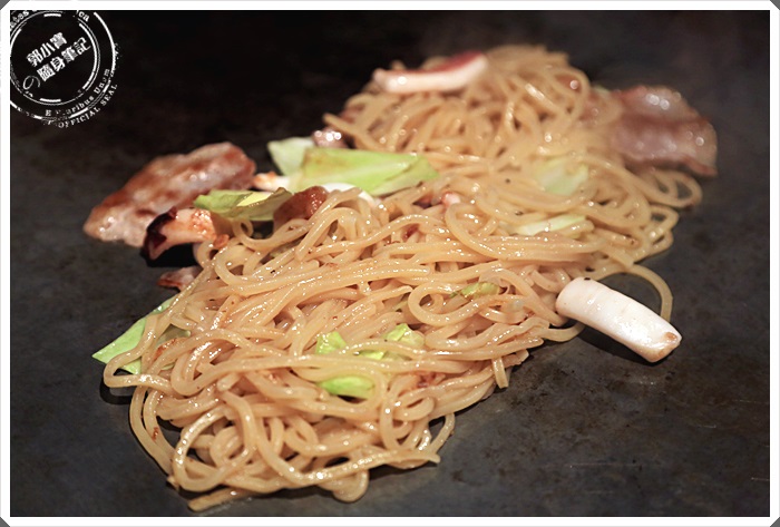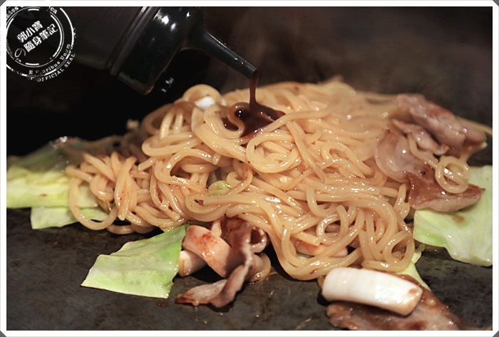 | 因為當下肚子真的還算滿餓的,所以菜單畫的有一點多,先上來的剛好是可以填飽肚子的豬肉塩燒,也就是炒麵的意思,本來這個是要自己處理的,不過工作人員看我們是外國人,就直接幫我們處理了,熟練的幫我們加上醬料後,也順便幫我們盛盤。 |