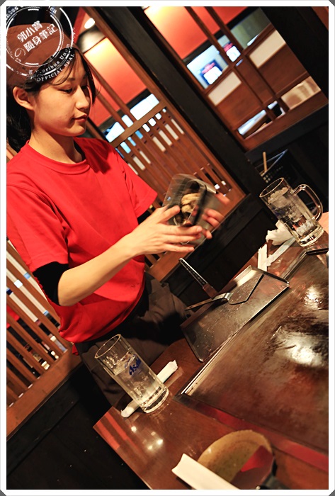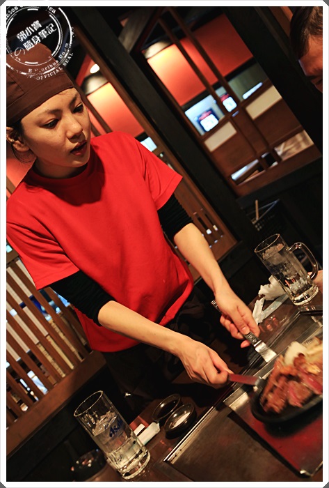| 親切的服務人員忙了一陣子後就已經完成了,跟我們簡單的表示說等文字燒放一下後就可以開始食用了,還特別交代說不用翻面,等下面的皮略熟後就可以食用了。 |