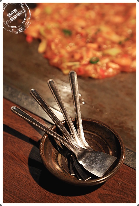 | 順便在附上小鏟子,基本上文字燒就是要這樣一口一口地吃,慢慢吃慢慢聊天,最主要來是提供給喝酒的客人有點東西配酒為主,但是大部分的台灣人還是狼吞虎嚥的一口氣把她吃完。 |