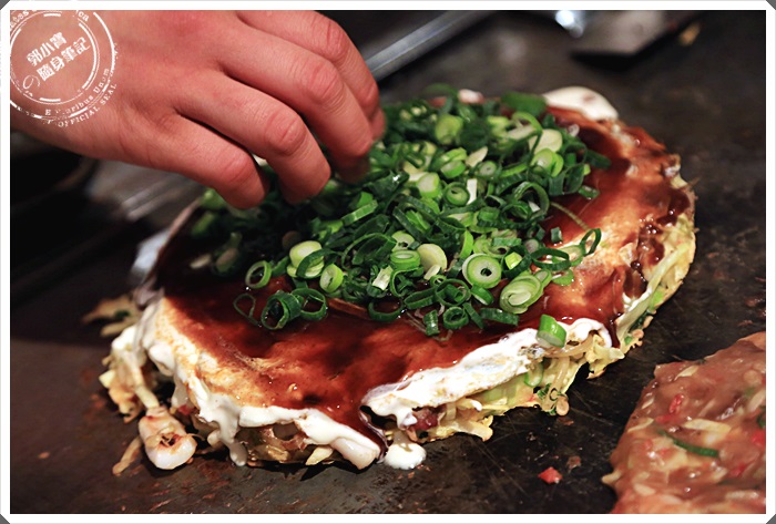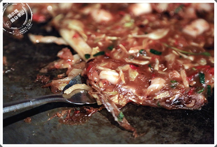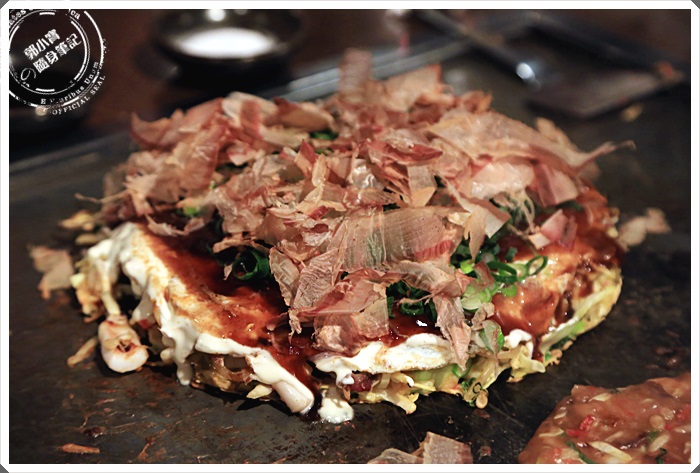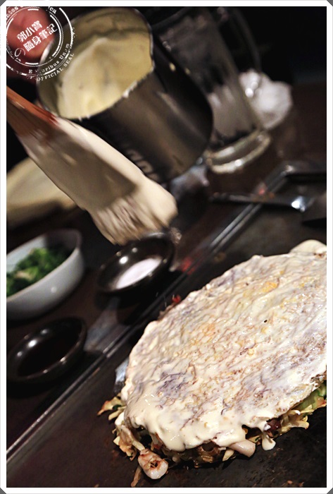 | 這是店內的招牌將目燒,看起來真的相當的驚人,上桌的時候大概就是已經辦完成品了,服務人員大概在塗醬,撒上蔥花跟柴魚片就大功告成了,這個時間還滿快就可以食用了,而且一人一份也算是滿有飽足感的。 |