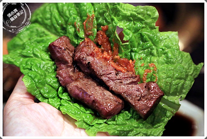 | 拌點辣醬的生菜夾上任何一款牛肉真的超搭,生菜的水分多又甜,辣醬提味加上牛肉的鮮甜軟嫩,我總是包好就一口往嘴裡塞,享受那生菜跟牛肉的汁液噴發,那快感真的很難形容。 |
