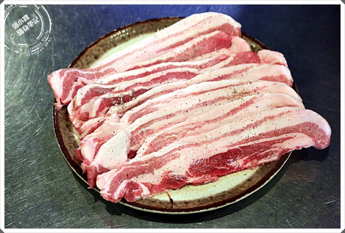 | 然後馬上又拿來了一大盤豬肉,看起來豬肉品質還真的步錯,瘦肉跟肥肉的比例各占一半。 |