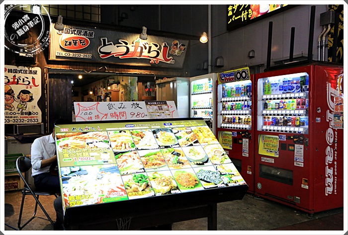 | 店外面兩邊有好多販賣機,飲料跟酒飲通通都有,好多人都在這邊投幣酒飲就坐在外面的桌子開始喝了耶! |