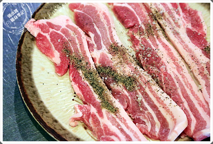 除了第一次拿來的肉比較多以外,後面在上的肉都是這樣三條,然後還會灑上胡椒粉,可能發現我太會吃了,灑點胡椒粉增加鹹度讓我比較容易口渴跟膩,但是我還是一杯烏龍打天下,猛吃狂吃一直吃!!!