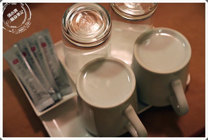 | 沒有提供茶包,四條長條的是梅精粉,這個泡起還喝還滿特別的,喝起來很像是熱的酸梅湯。 |