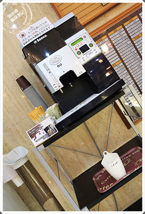 | 櫃檯旁邊有一台咖啡機,24小時都有提供熱咖啡,早上起床的時候彥根這個地方還滿冷的,喝杯熱咖啡的感覺相當的棒。 |