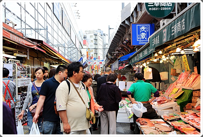 | 一開始大約會走個3-5分鐘都是魚市場居多,經過了這一段後就會是不一樣的商墊了。 |