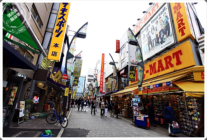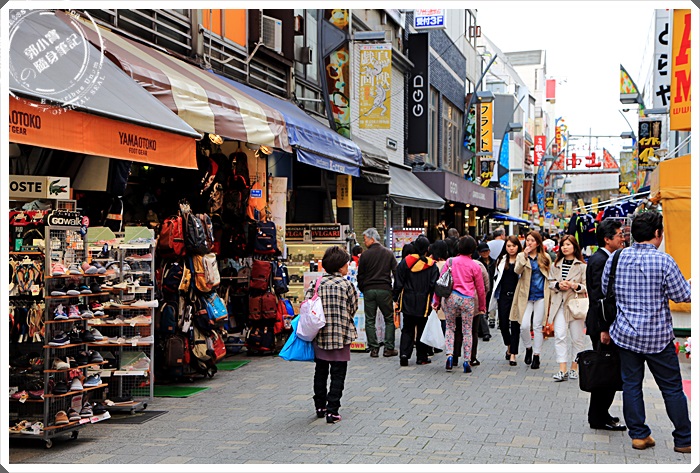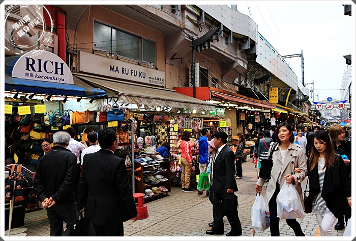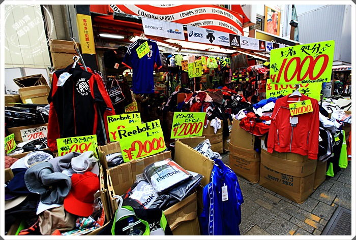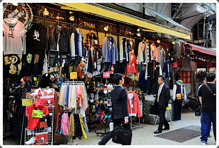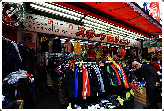 | 繼續往前走可以看到販售衣服、鞋子、保養品各式各樣的商店都有,這邊的店面都比較傳統也比較小間一點,商品幾乎都掛著滿滿的,這邊也是唯一在日本東京街道上不會看到一片黑壓壓都穿著西裝或套裝的少數幾個地方。 |