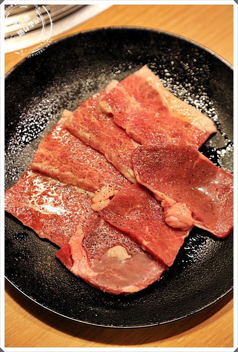 | 牛肉的品質都還不錯,使用的都是日本國產牛,每一種牛肉都有三種口味,鹽味、調醬跟原味,鹽味就是第一盤的那種,並不適撒上鹽,而是有點乳白色濃稠的鹽醬,但是還挺不錯的。 |