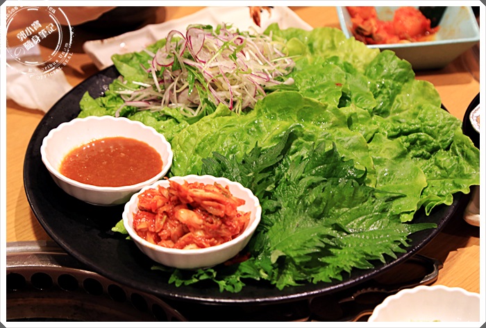 | 生菜盤每次都給一大盤,這樣比較好,且還會附上泡菜跟辣醬,泡菜還滿好吃的。 |