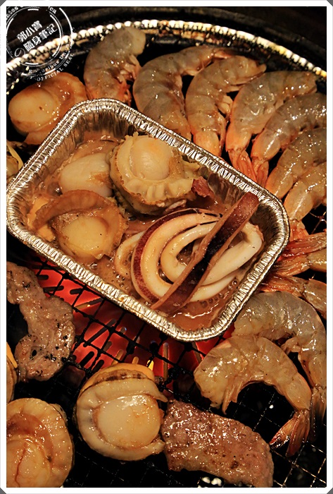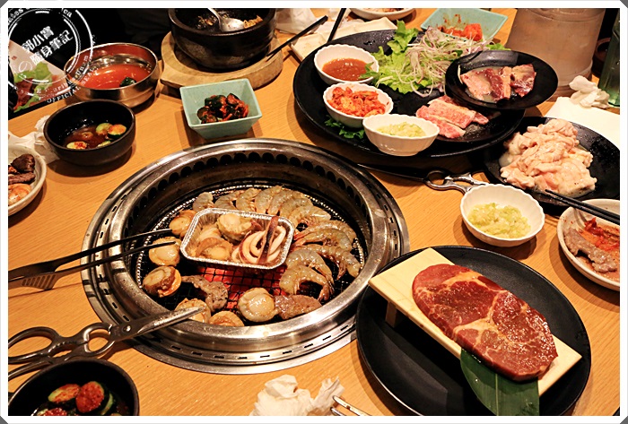 | 因為吃到飽的時間有限,所以烤肉速度相當的快,鐵網有多大都要給它瞬間裝滿。 |