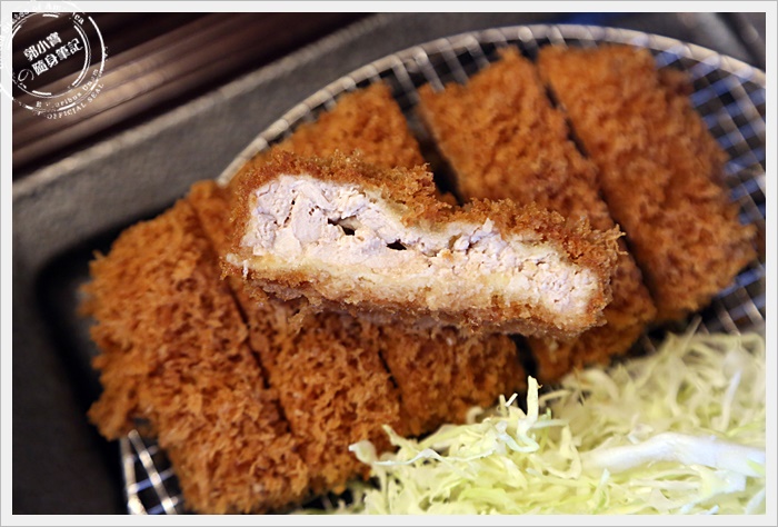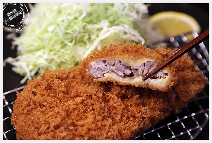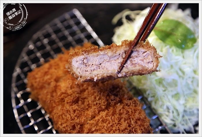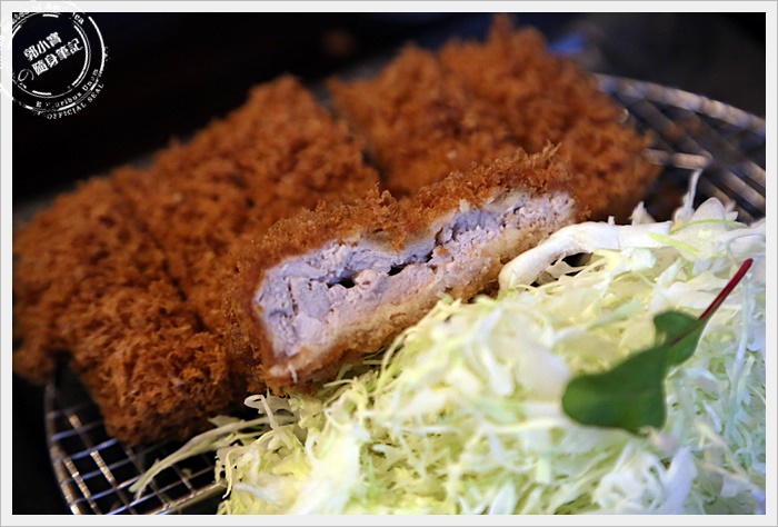 | 分量大約在100g左右,光用看的就覺得爽度破表了,日本厲害的豬排店是真的讓人嘆為觀止,外層的粉粿的相當的緊實,重點跟豬肉是手牽手的姿態。 |