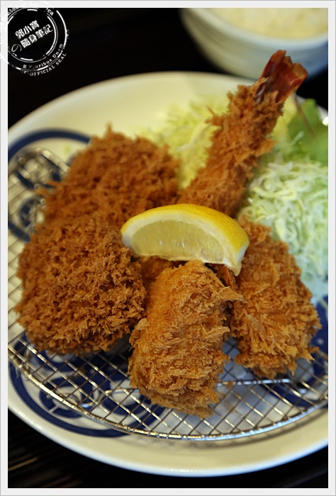 | 同行友人的套餐,其實也可以考慮這類型的套餐,除了有炸豬排以外還有炸蝦跟牡蠣等,還滿豐富的。 |