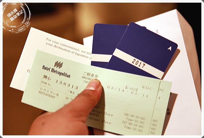拿到房卡跟早餐眷就準備上樓了,這樣是跟開心旅遊買的套裝機加酒,沒想到飯店還有提供早餐,因為日本的飯店早餐都是需要額外加費用的,我自己訂飯店很少加購早餐。