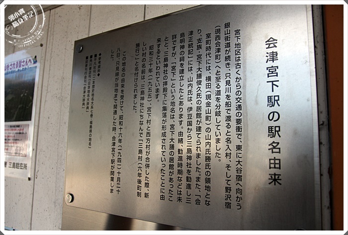 | 旁邊就是會津宮下車站,可以從這邊搭車回比較大的都市,但是班次比較少,建議可以先查詢一下班次,可以為你的行程作更好的規劃。 |