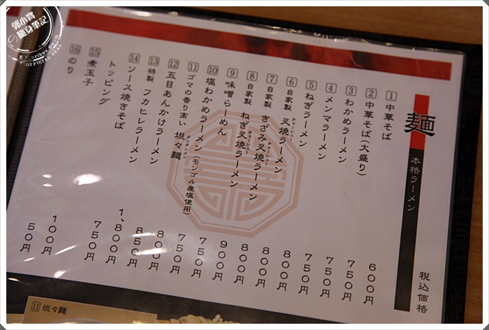 | 菜單裡面的拉麵種類還滿多的,各式各樣的拉麵都有,也有販售味噌拉麵,看得我有點眼花撩亂,不過最後還是點了一碗最基本的醬油拉麵。 |